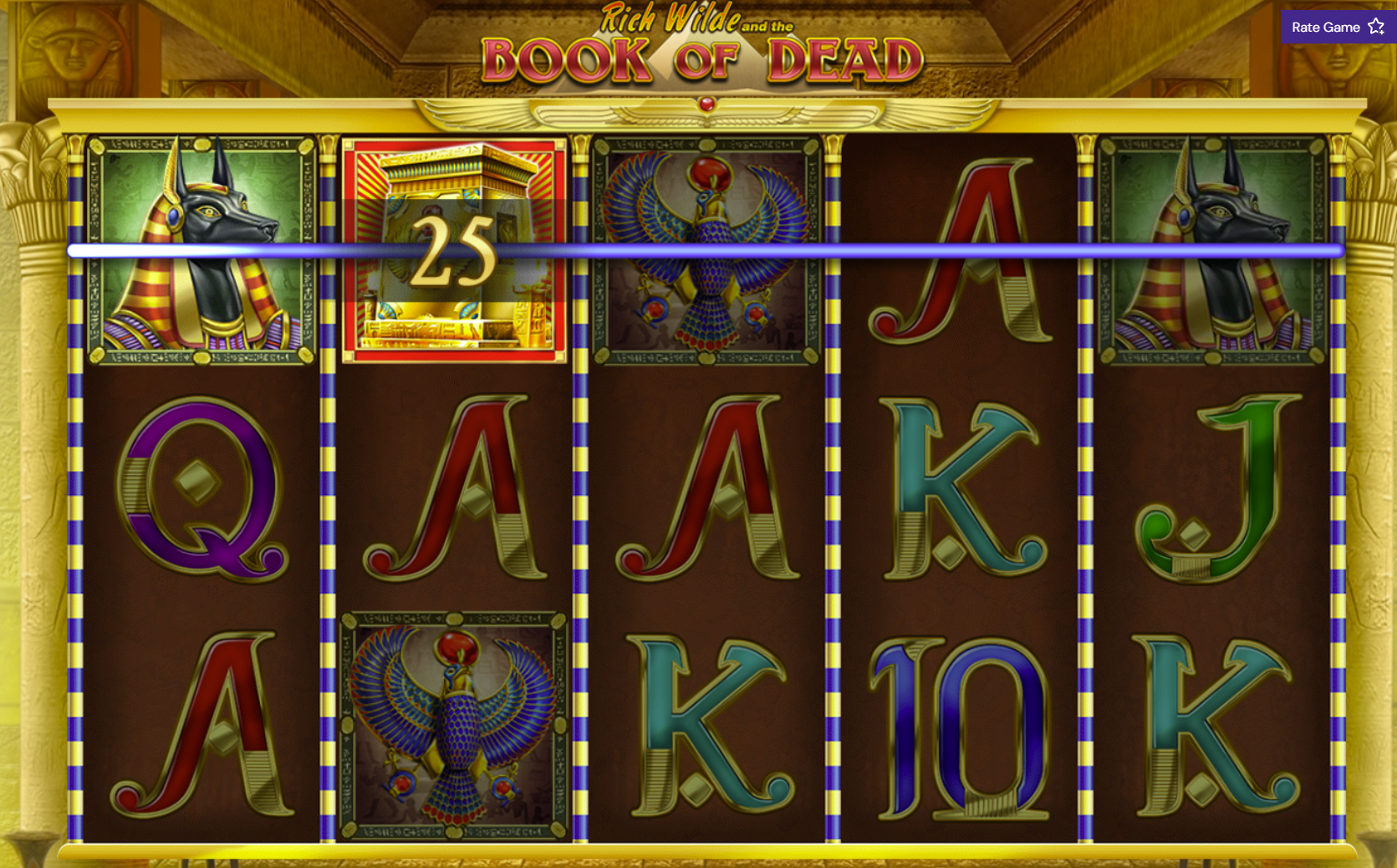 The highest-paying symbol is Rich Wilde, followed by the Egyptian gods. If one of these is chosen at the start of free spins, the potential for huge wins is dramatically increased.