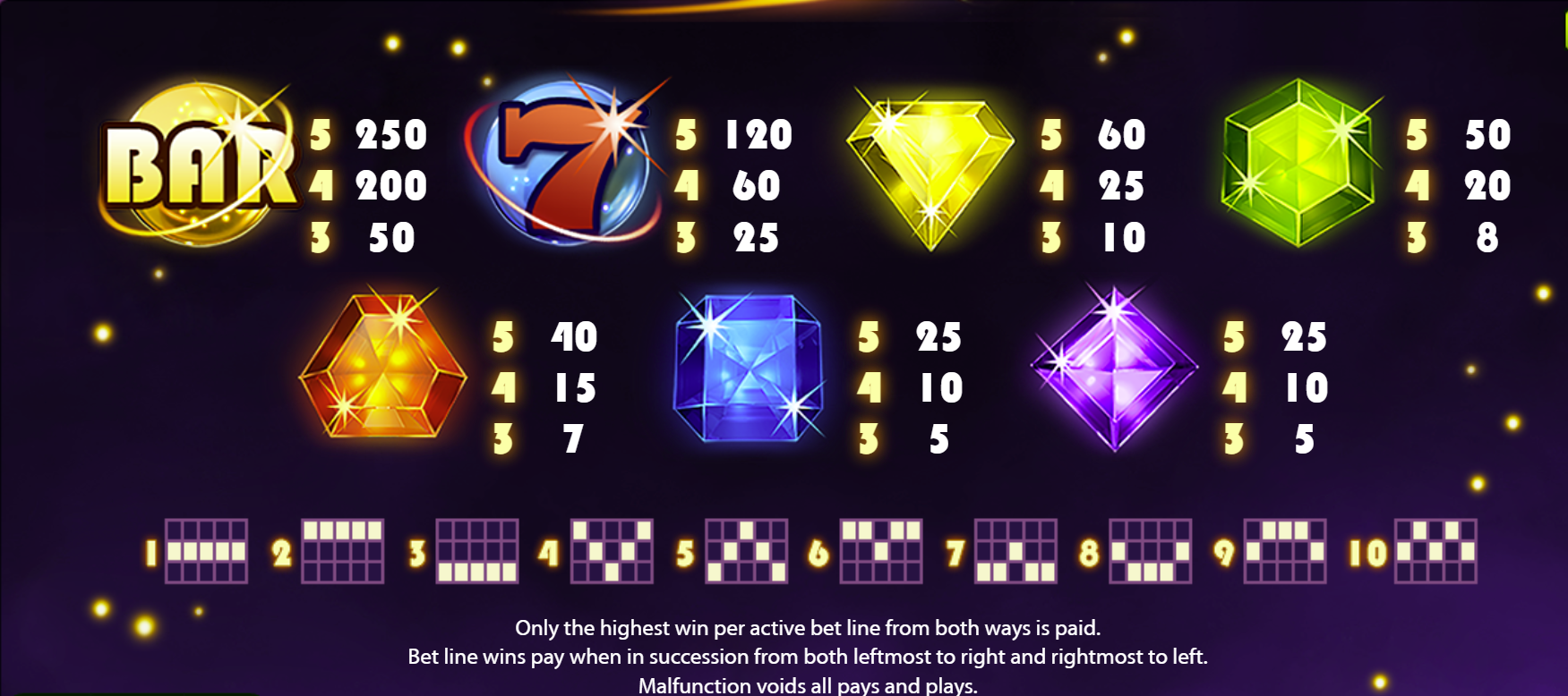 • Win Both Ways System: Wins pay from left to right AND right to left, effectively doubling your winning opportunities on the 10 fixed paylines.
